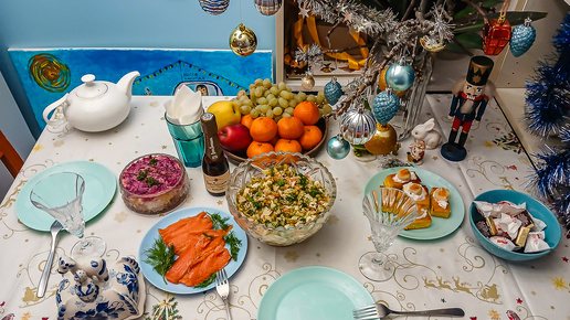 Замечательно встретили Новый год, с салатом оливье и селёдкой под шубой