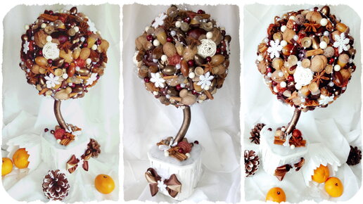 Новогодний топиарий из высушенных каштанов, скорлупы грецких орехов, желудей с шапочками, шариков из сизаля и ротанга. Изящное дерево счастья к Новому году в отреставрированном цветочном горшке с заливкой гипсом и заснеженной поляной из синтепона. Топиарий на новогоднюю тематику, друзья! Материалы для новогоднего топиария «Первый снег» Параметры топиария к Новому году Больше мастер-классов по топиариям: https://topiarii-mk.ru/topiary-collection/. Добро пожаловать! Видео мастер-класс Новогодний...