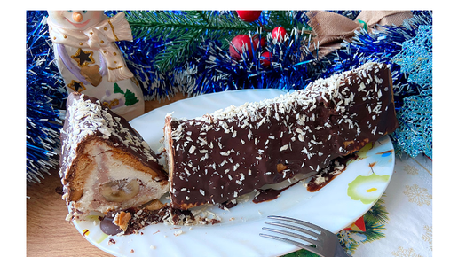 Новогодний торт «Творожный домик» из печенья без выпечки