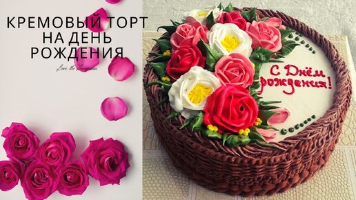 Кремовый торт на День рождения | Кремовое украшение торта цветами | Украсить торт на День рождения