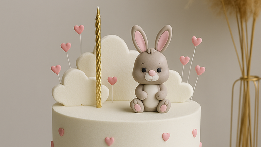 Если твоя девочка любит сказки, мультфильмы, облака и пушистиков — этот торт покорит её сердце. Милый зайчик, золотая свеча и нежные сердечки создают атмосферу уюта и чудес.