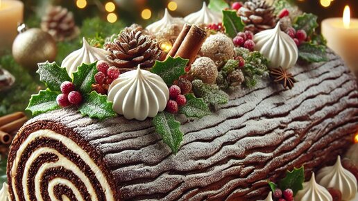 Традиционный Рождественский торт в виде полена или торт, который украсит праздничный стол и удивит гостей!