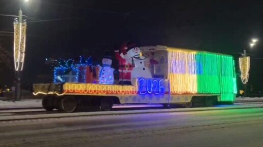 В Челябинске на маршруты вернулся новогодний трамвай-гирлянда