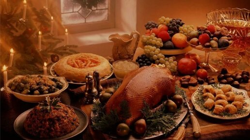 Здравствуйте! Сегодня я хочу рассказать вам о традиционной трапезе на праздник Рождества Христова.  В «Домострое» (16 век) есть следующие указания относительно еды в праздничные рождественские дни:- «В Великий мясоед после Рождества Христова к столу подают: лебедей да потрох лебяжий, жареных гусей, тетеревов, куропаток, рябчиков, поросят на вертеле, баранину заливную, баранину запеченную, поросят заливных, поросячий потрох, бульоны куриные, солонину с чесноком и с пряностями, лосину ... кур с вертелов,...
