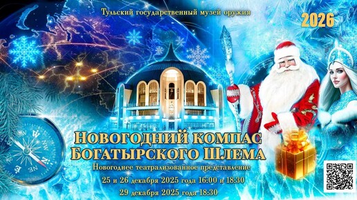 В волшебные дни конца декабря 2025 года в Тульском государственном музее оружия стартует детское театрализованное представление «Новогодний компас Богатырского Шлема»! Знаете ли вы, что Дед Мороз – самый быстрый волшебник на свете? Он успевает за одну ночь побывать в разных уголках нашей необъятной страны - от востока до запада. А не сбиться с маршрута ему помогает новогодний компас. Но что будет, если главным волшебником Нового года захочет стать таинственный чародей Ферро-Маг и заколдует компас...