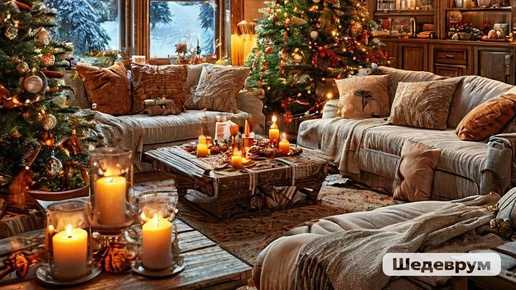 🎄 Новогодние песни у камина 4K 🔥 | Уютная атмосфера, музыка и звук огня (1 час)