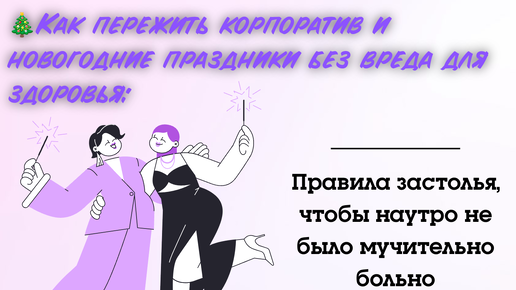 ❄️ Декабрь — это не только предвкушение чуда, но и марафон праздничных застолий. 🥂Корпоратив, встреча с друзьями, семейный ужин… И как после этого в январе не оказаться в строю «пострадавших» с диагнозом «слишком весело»? 📌Мы собрали нестрогие, но очень действенные правила, которые помогут встретить Новый год бодрым, здоровым и без мучительного утра «после». 🌟Главное правило: Праздник — не соревнование Запомните раз и навсегда: ваша цель — получить удовольствие от общения и атмосферы, а не поставить рекорд по количеству съеденного оливье и выпитого шампанского...