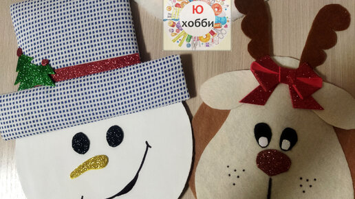 Здравствуйте, дорогие подписчики и гости канала. Недавно меня попросили сделать такой новогодний декор для украшения двери. Оказалось, делается он очень просто и быстро! Делюсь своей инструкцией. Нам понадобится: 1. Картон, 2. Обрезки тканей, 3. Немного фетра, 4. Синтепон, 5. кусочки блестящего фоамирана, 6. Декоративная лента, 7. Черный маркер, клей, ножницы. Для начала вырежем из картона 3 одинаковых круга. Диаметр - по вашему желанию. У меня примерно 15 см. И 2 прямоугольника для шляпы. Узкий...