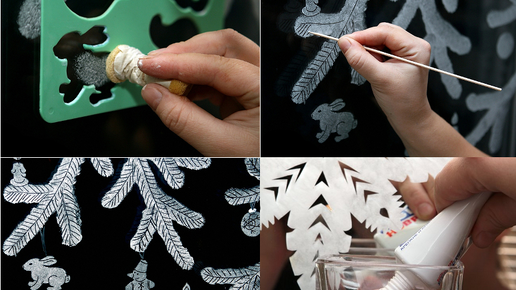 Уже совсем скоро Новый Год и чтобы создать атмосферу зимних праздников можно дополнительно украсить окна. Сегодня расскажем вам о двух интересных способах украшения с использованием зубной пасты. Зубная паста имеет белый цвет и хорошо видна на поверхности стекла, а после окончания праздиков легко смывается обычной водой. Первый способ заключается в нанесении зубной пасты с помощью тампона из губки на стекло в виде рисунков или через трафарет. После того, как паста немного подсохнет, деревянной палочкой или зубочисткой можно прорисовать детали...