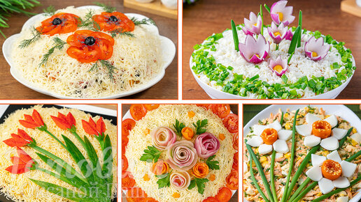 Сразу 5 удивительно Красивых САЛАТОВ с цветами!