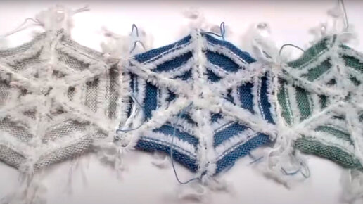 Новогодние снежинки для украшения одежды, вяжем пушистую отделку на вязальной машине