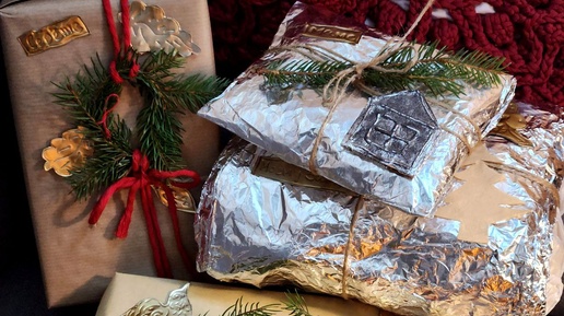Упаковка новогоднего подарка. Винтаж и крафт из подручных материалов