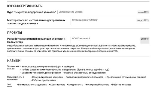 Пример резюме упаковщика подарков 2025 - Руководство