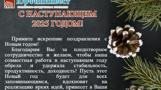 Уважаемые партнеры, клиенты и коллеги, поздравляем вас с наступающим Новым годом.