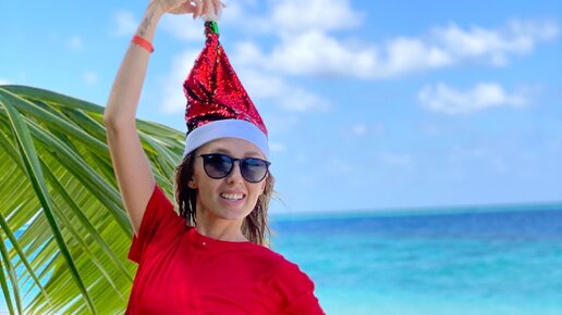 Вместо зелёной елки- зелёная пальма, вместо белого хрустящего снега под ногами, не менее хрустящий белый песок...
