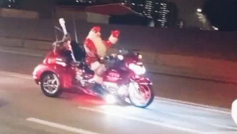 Байкер в костюме Деда Мороза промчался по Москве на трицикле