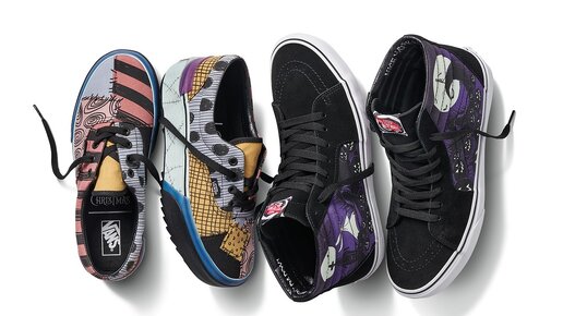 Выпустив первый образ в начале этого месяца, Vans представила полную коллекцию обуви и одежды, посвященную The Nightmare Before Christmas. Коллекция обуви представлена 10 различными стилями, основанными на шести классических силуэтах Vans. Силуэт Sk8-Hi переработан с поклоном на Джек Ламент, одну из самых известных сцен фильма, с панелями, изображающими прогулку Джека по кладбищу Хеллоуин Таун, и надписью «Nice Work, Bone Daddy», написанной внутри воротника. Кроме того, Sk8-Hi также выпускает дизайн, посвященный бутылочкам с зельями Салли в фильме...