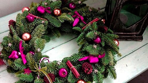 Новогодний венок своими руками из еловых веток и шишек | Новогоднее украшение на дверь