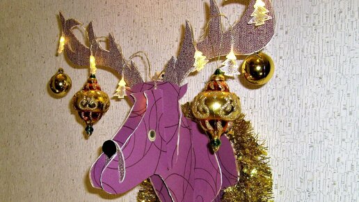 Давайте сделаем такого оленя. Мне сказали, что это может быть олень Рудольф, олень Санты. Весело! Рога украшены Новогодними игрушками и светящейся гирляндой с лампочками. Голова оленя с Новогодними украшениями - зксклюзив! Лучше Новогодней елки! Друзья, если понравился олень, поставьте лайк и поделитесь. Весь ход работы лучше смотреть в видео, там я показываю и размеры. В интернете можно много найти выкроек такого оленя, но они без размеров. Я примерно соотносилась с этими выкройками, но рисовала заготовки сама, потому-что они все на листе А4 в интернете...