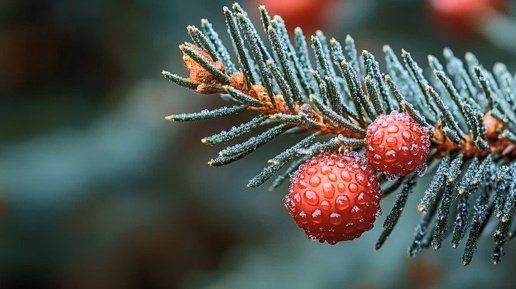 Ветка рождественской ели Живые обои - Зима Заставка с еловой веткой, словно кусочек зимы прямо на рабочем столе, сине-зелёные иглы на ветке, капли воды и тонкий иней, всё это оживляет живой фон, делая его естественным и свежим...