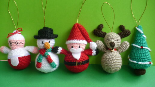 Новогодние игрушки крючком. Бесплатное описание. Ёлочка, снегири, снеговик