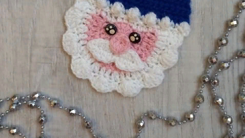 Такой новогодний подарочек порадует не только ребенка, но и взрослого человека! Вяжется легко и быстро! Нужно связать 4 детали : шапочку с опушкой, личико с бородой, усы и носик. Потом все это соединить! Да, еще нужны 2 красивых глазика. У меня нашлись 2 черные пуговицы на ножке. Зрачки и блики нарисовала акриловой краской. Вместо помпона на шапочке можно пришить колечко. Описание и схемы Кольцо Кольцо обвязать столбиками без накида белой пряжей и заправить конец нити. Шапочка Шапочку можно вязать красной или синей пряжей...