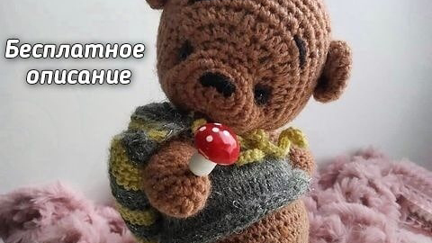 Вязаный мишка крючком из плюшевой пряжи, мастер-класс и описание