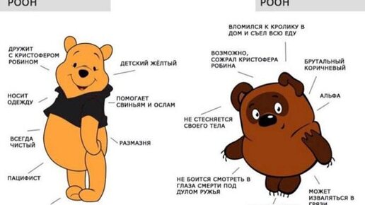 🤩Винни-Пух и ГигаЧад Посмотрите, какая прелестная картинка. Сравнивают нашего и американского Винни-Пуха (у Винни-Пуха сегодня день рождения, кстати). Американский, определено, virgin - этакий невинный медведь-инфантил. А русский Винни-Пух подписан интригующим словом 📌Chad. Нет, это не страна и не озеро. 🤩Это наш любимый #сленг и в переводе это слово означает что-то типа «активный, привлекательный белый мужчина, альфа-самец, мачо». 🤩Возникло слово ещё во время Второй мировой, но сейчас...
