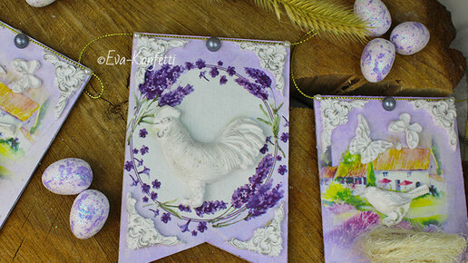Объёмная гирлянда-флажки в винтажном стиле к весне или Пасхе своими руками!💜