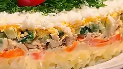 Вкусный и необычный слоеный салат с курицей на праздничный стол