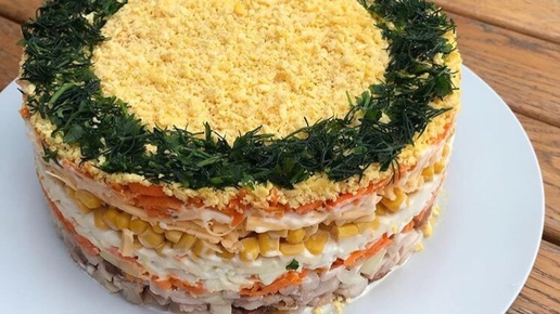 СЛОЕНЫЙ САЛАТ С КОПЧЕНОЙ КУРИНОЙ ГРУДКОЙ, СЫРОМ И СУХАРИКАМИ. ОЧЕНЬ ВКУСНЫЙ САЛАТ НА ПРАЗДНИЧНЫЙ СТОЛ