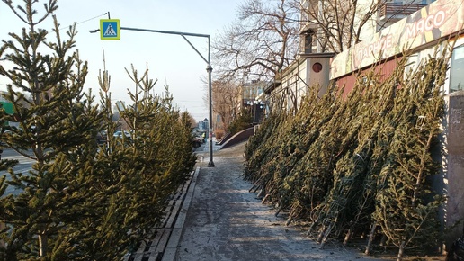 Бойкая торговля елками идет во Владивостоке. Какие цены?