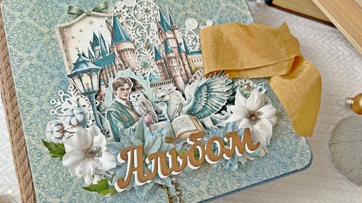 Добрый день, мои хорошие. Сегодня вас вдохновить постараюсь я, Марина Новикова, и зимне-волшебная или волшебно-зимняя коллекция "Рождество у волшебников". Я очень люблю книги и фильмы, по мотивам которых сделана коллекция, а то, что она еще и новогодняя, усиливает ощущение волшебства и ожидания чуда! Тогда повторяйте за мной: "Акцио Альбом"! Та-дам!" И у меня получился увесистый, объемный и невероятно волшебный альбом, размером 21х21 см, на три разворота. На обложке альбома, словно из волшебной сказки, оживает зимний мир магии и чудес...