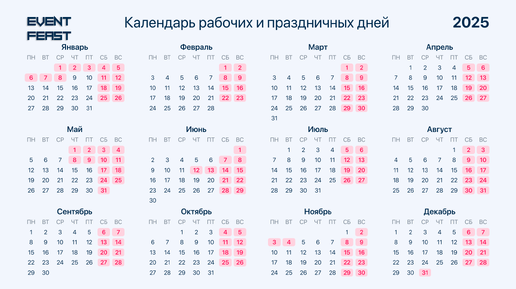 Календарь рабочих и праздничных дней 2025: планируйте отдых заранее