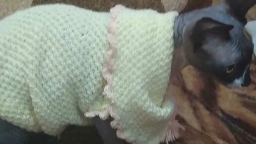Моя сестра вязала Молли одежду, и у нее это хорошо получалось. Вы только посмотрите на желтенький свитерок. Но одежду еще можно пошить. Сам процесс не займет много времени. Чтобы пошить жилетку для сфинкса, специальные выкройки не понадобятся, достаточно обычного старого свитера. Далее, следуйте инструкции: 1. Отрежьте рукав свитера и положите на стол швом вниз, а сгибом наверх. 2. Окат подрежьте (он станет низом одежды), поэтому должен быть короче...