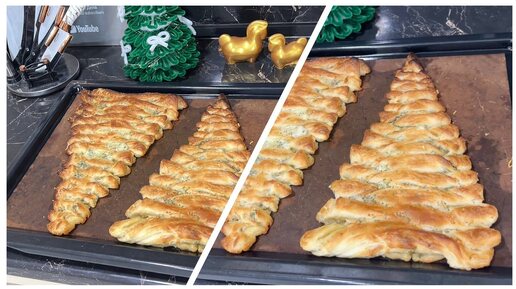Новогодняя выпечка. Простые и быстрые ёлочки из слоеного теста