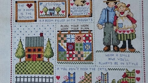 Я обожаю сэмплеры. Всякие разные и примитивные и сложные. Вышиваю их периодически и наслаждаюсь процессом. Ну думаю, что все рукодельницы знают, что сэмплеры это фактически древние журналы по вышиванию. Мастерицы на холсте вышивали что бы не забыть образцы орнаментов, рисунков, .... Пробовали как сочетаются цвета между собой и получались такие вышитые коллажи. Я думала, что они появились сначала в Англии, а тут прочитала, что первые древние сэмплеры были найдены в Египте. Но все таки широкое распространение...