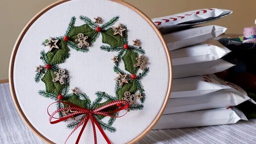 Kак вышить легко и быстро новогодний веночек