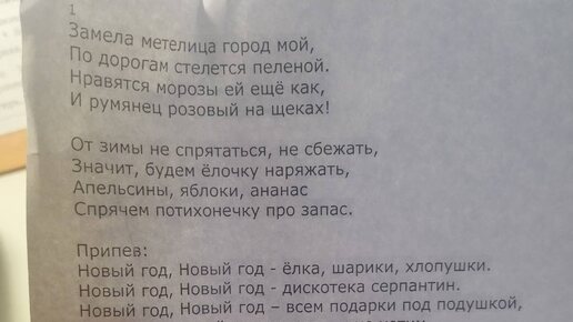 На уроке музыки педагог выдал всем детям текст новогодней песенки выучить