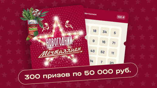Подарите себе или близким яркие эмоции и возможность выиграть крупный денежный приз на этих январских праздниках. Купите билет на новогодний «Мечталлион», участников которого ждет сюрприз: розыгрыш 15 миллионов рублей в акции «Рождественская сказка»*. Мы разыграем среди билетов новогоднего «Мечталлиона» без выигрыша 300 призов по 50 000 рублей или 50 000 бонусов. Результаты акции будут объявлены 6 января на сайте nloto.ru. В «Рождественской сказке» автоматически участвуют лотерейные билеты, купленные...