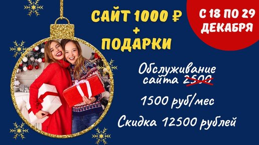 Декабрь, время подарков и волшебства! Поэтому наша компания подготовила для Вас поистине чудесное предложение. С 18 по 29 декабря первый месяц обслуживания сайта всего 1000 рублей, все последующие месяца по 1500 рублей в месяц, вместо стандартных 2500 рублей. ВЫГОДА в год составляет 12500 рублей. Разработка сайта БЕСПЛАТНО. Срок договора 12 месяцев. После все ключи от сайта мы передаем Вам. ПЛЮС вручим подарков на 30.000 рублей! В подарки будет входить наш легендарный виджет WhatsApp. А также такие виджеты как: робот-консультант для сайта, колесо фортуны, видео-виджет и мультикнопка...