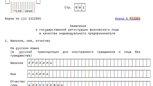 Как заполнить заявление на регистрацию ИП по форме Р21001 в 2024 году
