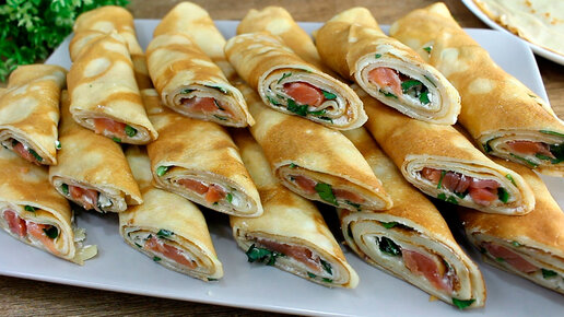 Закуска на новый год и на завтрак после праздника: вкуснейшие блинчики с красной рыбой и творожным сыром, от которых и кусочка не останется