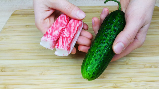 Беру огурец, крабовые палочки и готовлю быструю закуску на любой праздник (трачу всего 15 минут и вкусно очень)