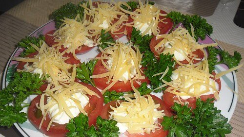 Закуска из помидоров и сыра - классическое сочетание ингредиентов и новая подача блюда на праздничный стол