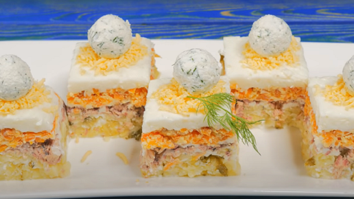 Любой праздничный стол, особенно новогодний, пестрит всевозможными салатами и закусками. И среди общего многообразия достойное место может занять эта замечательная закуска-салат с очень оригинальной подачей – в форме кубиков. Блюдо получается вкусным, интересным, привлекающим внимание гостей. С приготовлением придется немного повозиться, но это того стоит. Нам потребуется банка консервированной сайры или другой рыбы – примерно 150 – 170 грамм без жидкости, картофель отварной – 350 грамм, огурец...