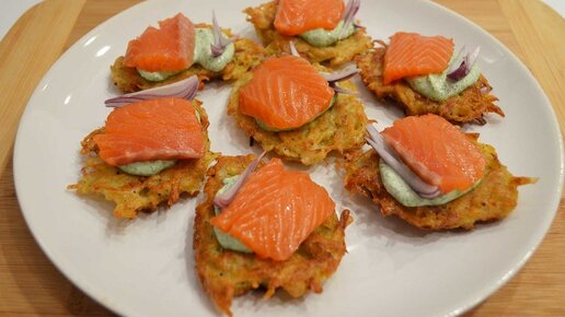 Драники с форелью и творожным соусом: закуска на праздничный стол