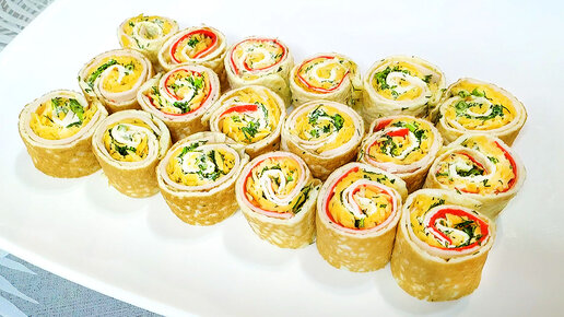 Готовлю простую и бюджетную закуску на праздничный стол. Вкусные закусочные блинчики с начинкой.