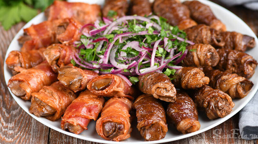 Покажу, как оригинально подать на праздничный стол куриную печень, куриную грудку, фарш и хлеб с овощами. Все закуски готовятся очень просто и легко. Они удивляют и вкусом, и видом. Принцип приготовления один и тот же, но вкус у закусок получается разный. Это красивые, интересные и очень вкусные блюда. 1. Закуска из куриной печени. Куриную печень (500 г) промываем и разрезаем пополам. В глубокую миску добавляем соевый соус (3 ст. л.), сок лимона (2 ст. л.), мед (1 ч. л., можно заменить на сахар), растительное масло (1 ст...