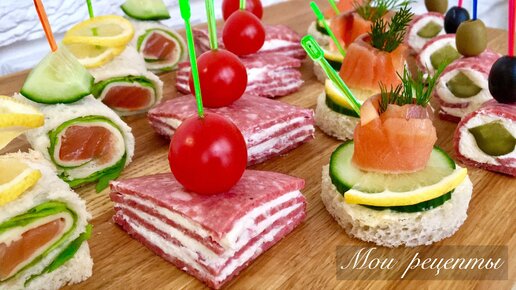 Закуски занимают почетное место за праздничным столом. Предлагаю приготовить четыре варианта очень оригинальных и невероятно вкусных закусок на праздничный стол или фуршет! Эти закуски заменят обычную мясную или рыбную нарезку, и сделают Ваш стол по настоящему праздничным! Пошаговый Видео рецепт можно посмотреть в конце! Количество продуктов для закусок зависит от количества гостей. ВАРИАНТ №1 Ингредиенты: Красная рыба (слабосолёная сёмга) Плавленый бутербродный сыр Тостовый хлеб Свежий...
